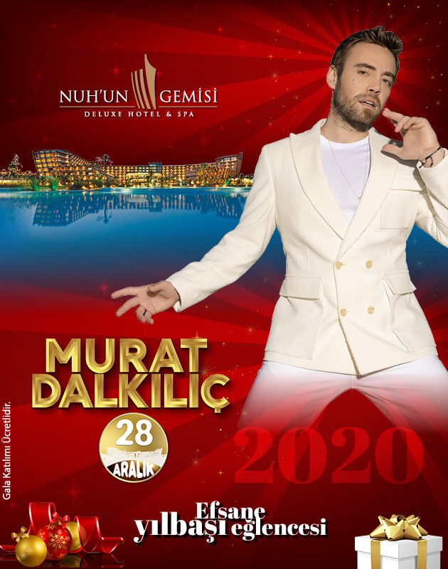 2020 Yılbaşı Eğlencesinin başlangıcını Murat Dalkılıç’ın harika konseri ile yapmaya ne dersiniz? Kıbrıs’ın en güzel bölgesinde olan Nuh’un Gemisi Deluxe Hotel & Spa, 2020 yılbaşı tatilinin ilk gününde, 28 Aralık Cumartesi akşamı sizi ve ailenizi unutulmaz ve eğlenceli Murat Dalkılıç konserine davet ediyor.