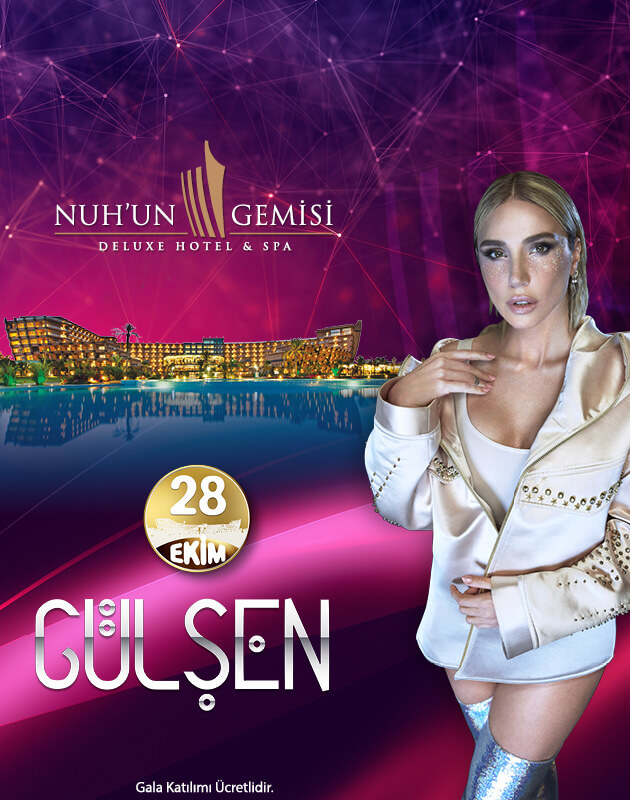 Bangır Bangır, Bir İhtimal Biliyorum, İltimas gibi Türkiye’de liste başı olan ve milyonlarca dinlemeye sahip şarkıları ile büyük ses getiren Gülşen, Kıbrıs’ın en güzel bölgesinde olan Nuh’un Gemisi Deluxe Hotel & Spa’da siz sevenlerine harika bir konser vermeye hazırlanıyor. Ailenizle keyifli bir akşam geçirmek için bu konseri kaçırmayın.