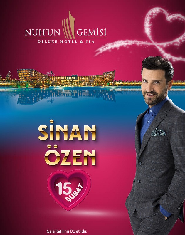 Sevgililer günü yaklaşıyor! 14 Şubat Cuma Günü Sevgililer Günü‘nü kutlamak, ertesi gün de 15 Şubat Cumartesi Akşamı Sinan Özen Konseri ile unutulmaz bir eğlence yaşama fırsatı, Kıbrıs’ın en güzel bölgesine konumlanmış Nuh’un Gemisi Deluxe Hotel & Spa’da.