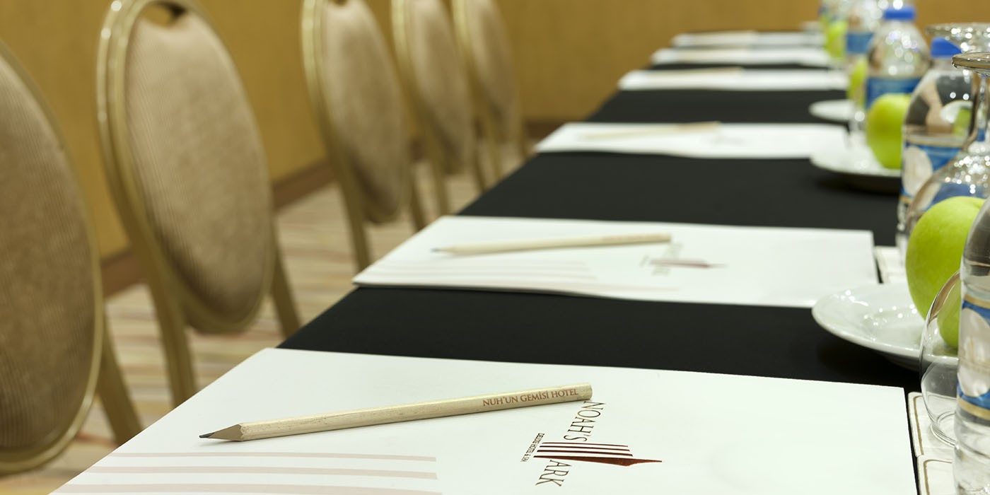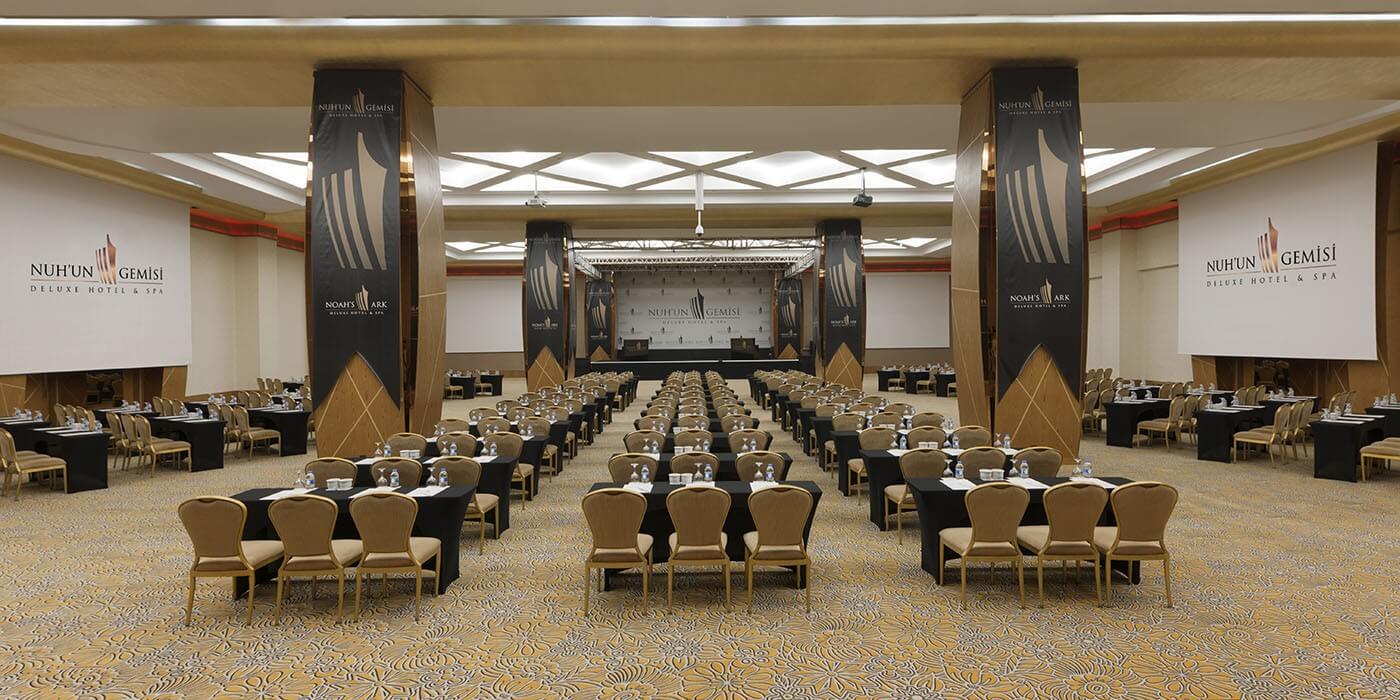 Konforlu, şık ve üstün teknolojiyle donatılmış konferans ve toplantı salonlarıyla iş dünyasının ihtiyaçlarını en iyi şekilde karşılayan Nuh’un Gemisi Deluxe Hotel & Spa, güleryüzlü ve işinde uzman ekibi ile kusursuz toplantılar için sizleri bekliyor.