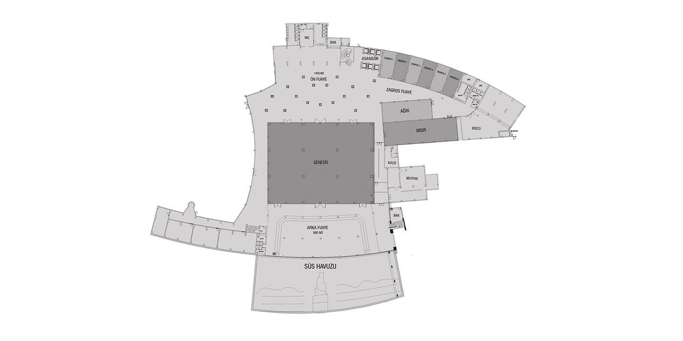 | GENESIS | 1200 m2 | 30 m | 40 m | 6.5 m | 900 kişi | 1200 kişi | 1000 kişi |