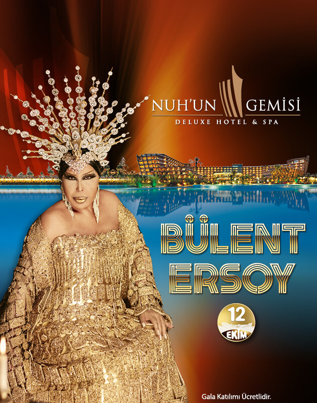 Türk Sanat Müziğinin Usta Sanatçısı Bülent Ersoy’un konserinde şimdiden yerinizi ayırtarak ailenizle harika bir müzik ziyafeti yaşama ve doyasıya eğlenme fırsatını Nuh’un Gemisi Deluxe Hotel & Spa’da yakalayın.